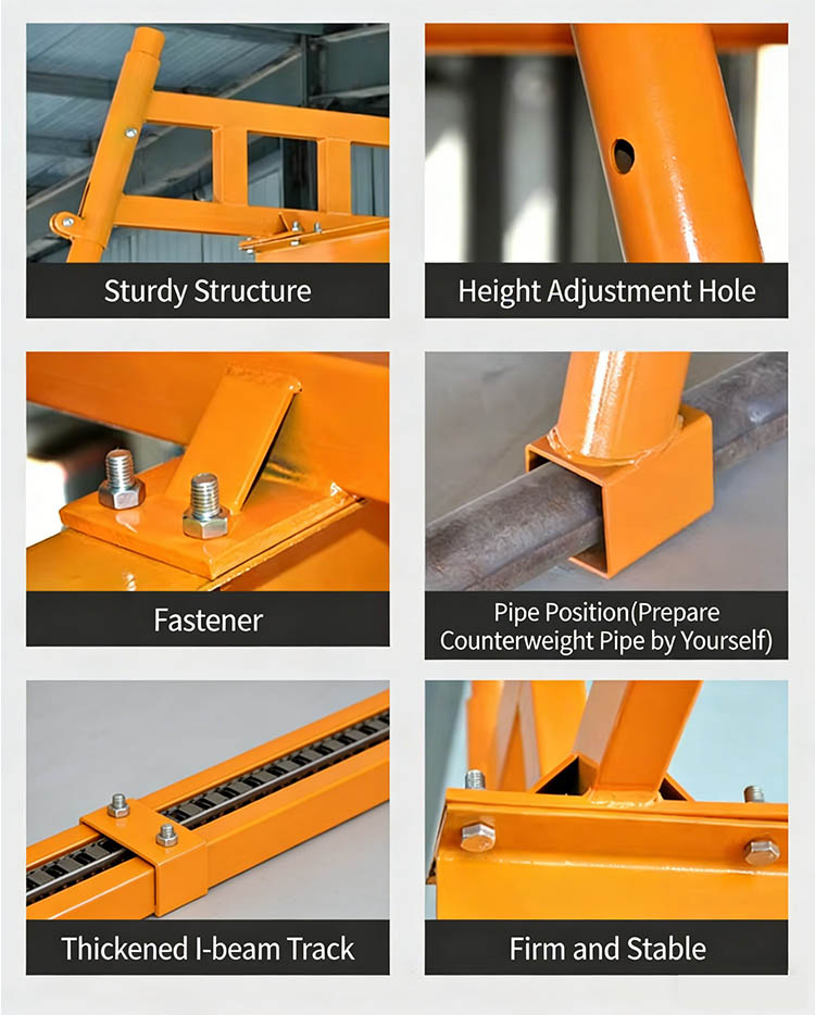 Installazione del contrappeso:Aggiungere tubi di contrappeso (forniti dall'utente) nei punti di penetrazione dei tubi sulle colonne per garantire la stabilità del baricentro dell'attrezzatura e impedirne il ribaltamento.