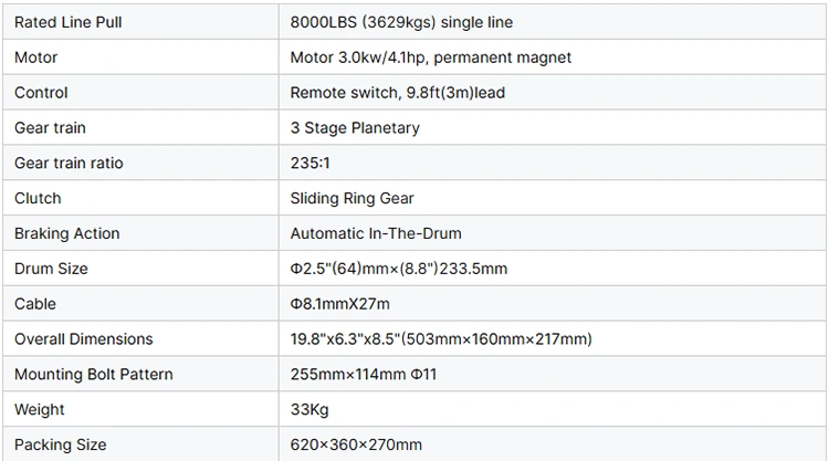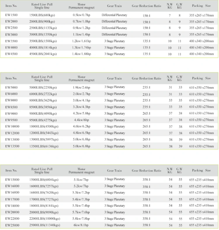 1. Adotta un motore avvolto in serie 12/24 V, fornisce una forte tensione e una velocità lineare elevata e soddisfa i requisiti di varie condizioni pesanti.